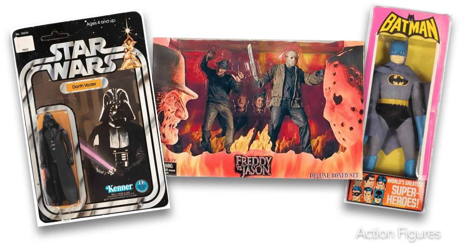 Whether it’s a mint-in-box Kenner Star Wars figure or a loose 1970s Mego, our team has the know-how to assess what your action figures are truly worth. We’ve spent over three decades handling everything from classic GI Joes and Marvel ToyBiz to graded rarities and modern McFarlane collectibles and we’ve built a buyer network that’s always looking for the next great find.